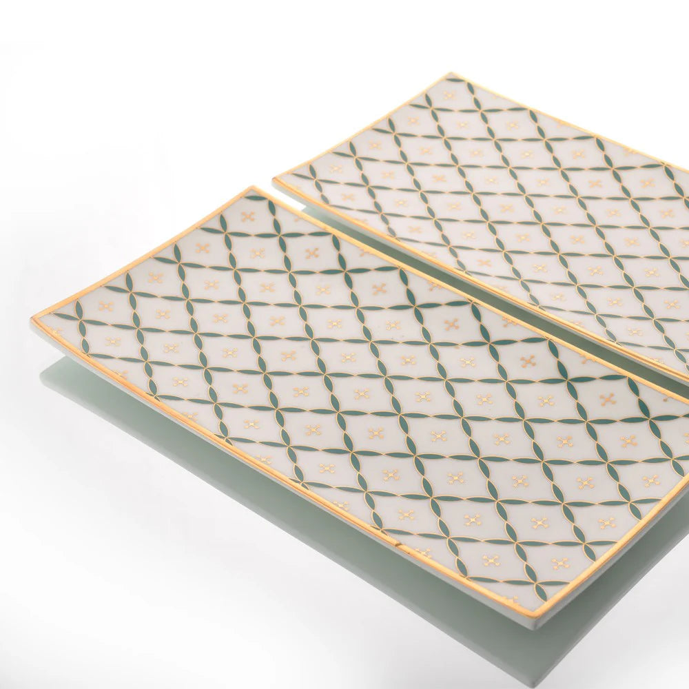 Made from sturdy, sleek & lightweight fine bone china. Jyamiti Gift Set has been hand decorated with hues of green and symmetrical designs inspired by the geometrical perfections in Indian monuments and have been highlighted with 24-karat gold. They undergo three stages of firing and stringent quality check to attain the finish.
