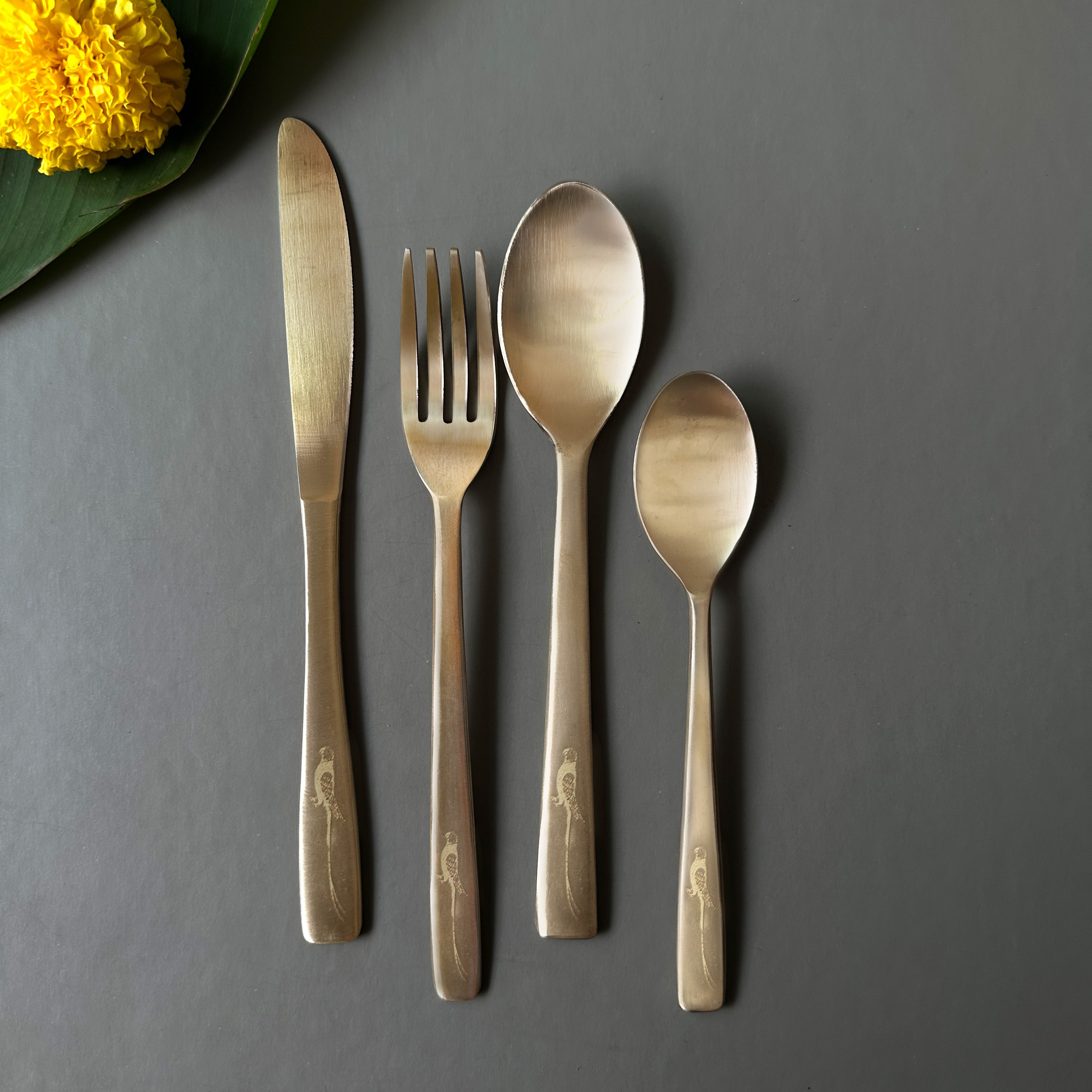 Our Kansa Collection is a fusion of tradition and innovation. Fork has been crafted by skilled tribal artisans. Kansa is an alloy of 78% Copper and 22% tin and is celebrated for its remarkable attributes. Beyond its health benefits, Kansa's natural heat conductivity keeps food warm and flavours intact. Cherished since ancient times for its gut-friendly properties, Kansa has also found its place in Indian temples.