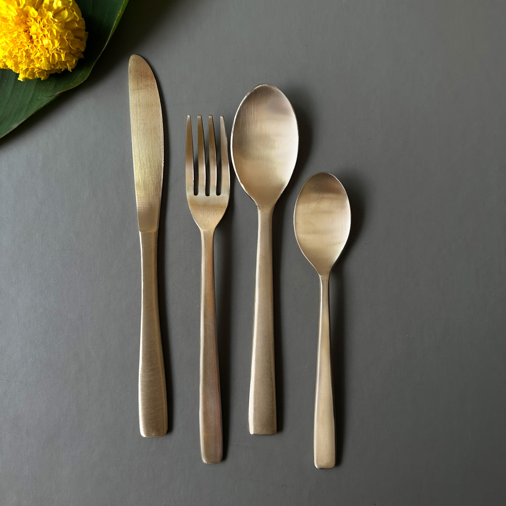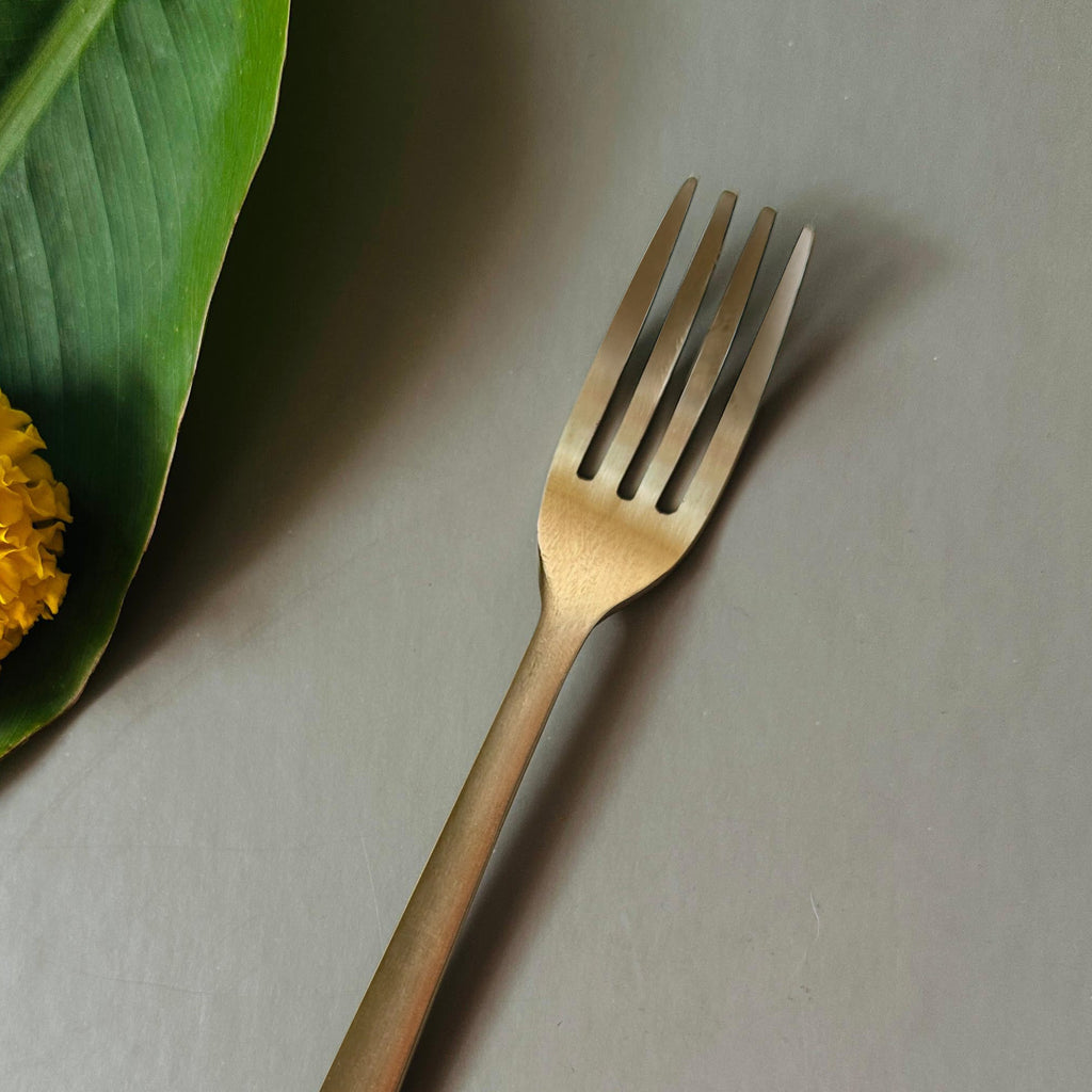 Our Kansa Collection is a fusion of tradition and innovation. Fork has been crafted by skilled tribal artisans. Kansa is an alloy of 78% Copper and 22% tin and is celebrated for its remarkable attributes. Beyond its health benefits, Kansa's natural heat conductivity keeps food warm and flavours intact. Cherished since ancient times for its gut-friendly properties, Kansa has also found its place in Indian temples.